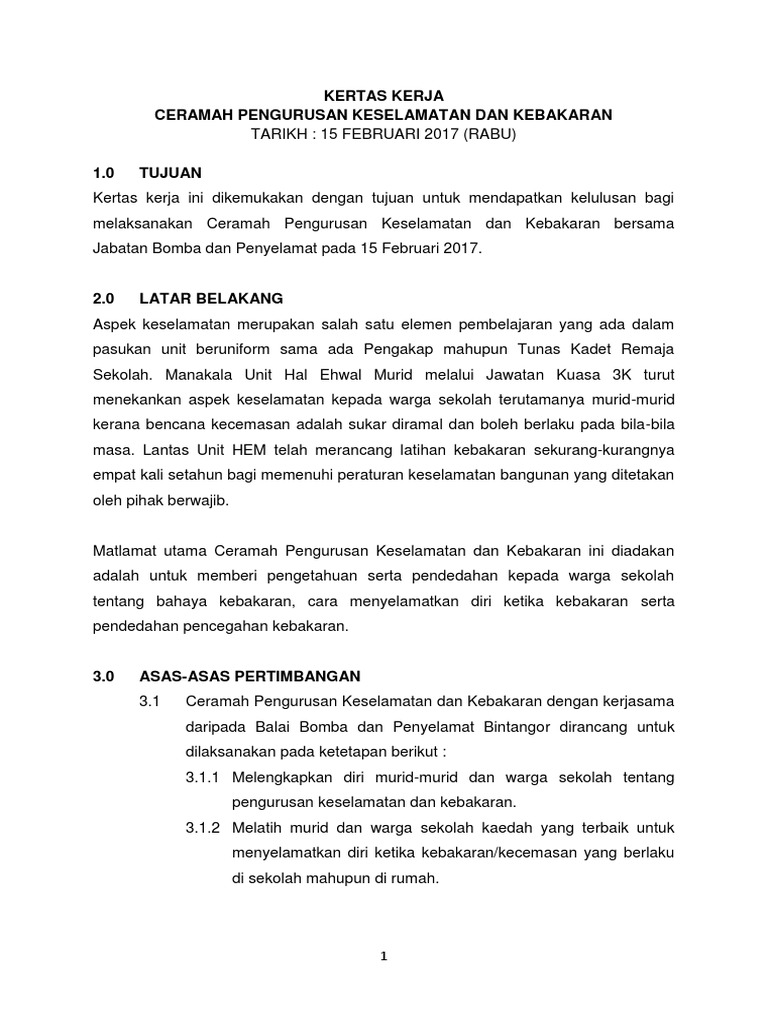 Kertas Kerja Pengurusan from imgv2-1-f.scribdassets.com Diharap agar perkongsian contoh surat permohonan latihan industri (praktikal) ini dapat. Ini, kandungan kursus yang diberikan adalah relevan oleh itu. Contoh kertas kerja program gotong royong 2012. Mengandungi contoh format surat memohon latihan kebakaran (fire drill) kepada pihak balai bomba dan penyelamat berserta kertas kerja program. 1.0 pengenalan ahli jawatankuasa badan disiplin dengan kerjasama jawatan kuasa bimbingan & kaunseling sekolah kebangsaan , telah bercadang untuk mengadakan satu program pembentukkan sahsiah diri. Program latihan kerja pekerja baharu dan nur adriana binti ramjan 2 menguruskan segala kewangan nurul shamila binti ahmad semasa program berjalan. Visi dan misi visi : Use the download button below or simple online reader.