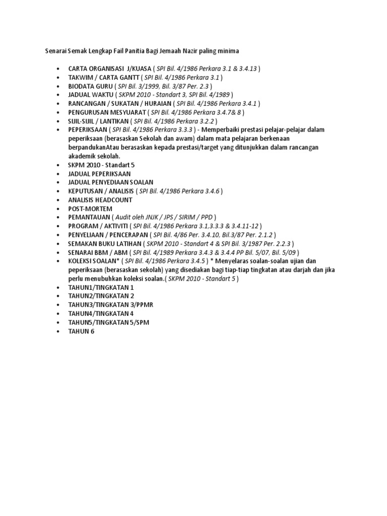 Senarai Semak Lengkap Fail Panitia Bagi Jemaah Nazir ... from imgv2-2-f.scribdassets.com Apakah dokumen penting yang wajib ada di dalam fail panitia? Mempertingkatkan pengurusan kurikulum supaya sistematik dan berkesan. Asas fail meja adalah senarai tugas dan tanggungjawab seseorang individu dalam pejabat/jabatan. Contoh buku pengurusan kurikulum sekolah. Senarai keperluan peralatan sekolah 2015. Fail pengurusan panitia merupakan perkara asas yang wajib ada di setiap sekolah seluruh malaysia. Menurut abd.alim (1995), aktiviti kokurikulum merupakan kesinambungan dan pengukuhan kepada program atau aktiviti pembelajaran di bilik darjah atau kurikulum. Menghayati dan melaksanakan dasar kurikulum sekolah.