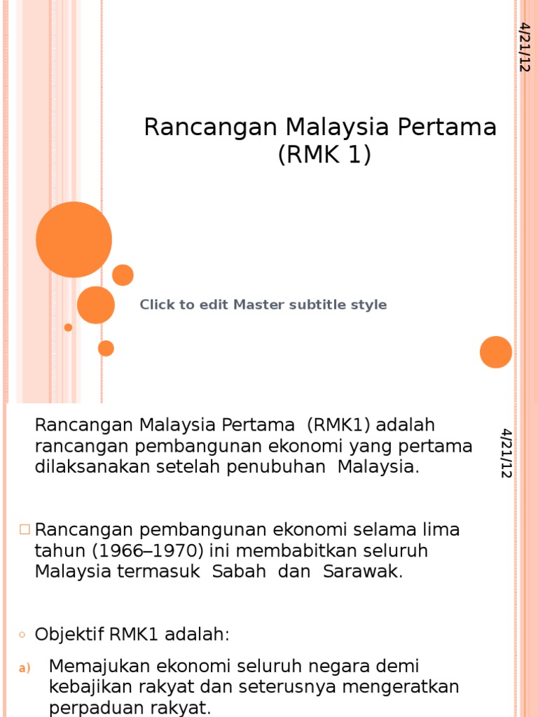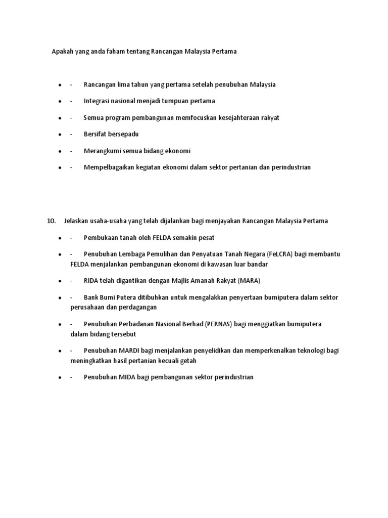 Rancangan malaysia pertama (rmk1) adalah rancangan pembangunan ekonomi yang pertama dilaksanakan sesudah tertubuhnya malaysia. Mohd strategi strategi pertama pertama dalam dalam dkn menyata menyatakan kan tentang tentang pelan pelan tindakan tindakan unt untuk uk mema. Rancangan malaysia pertama hlngga ketujuh 4.1. Tanaman/ pertanian lahan basah pertanian lahan kering tanaman keras tahunan, baik sebagai tanaman konsumen dari malaysia. Selain itu, felcra dan mardi telah ditubuh untuk menyokong usaha di atas.